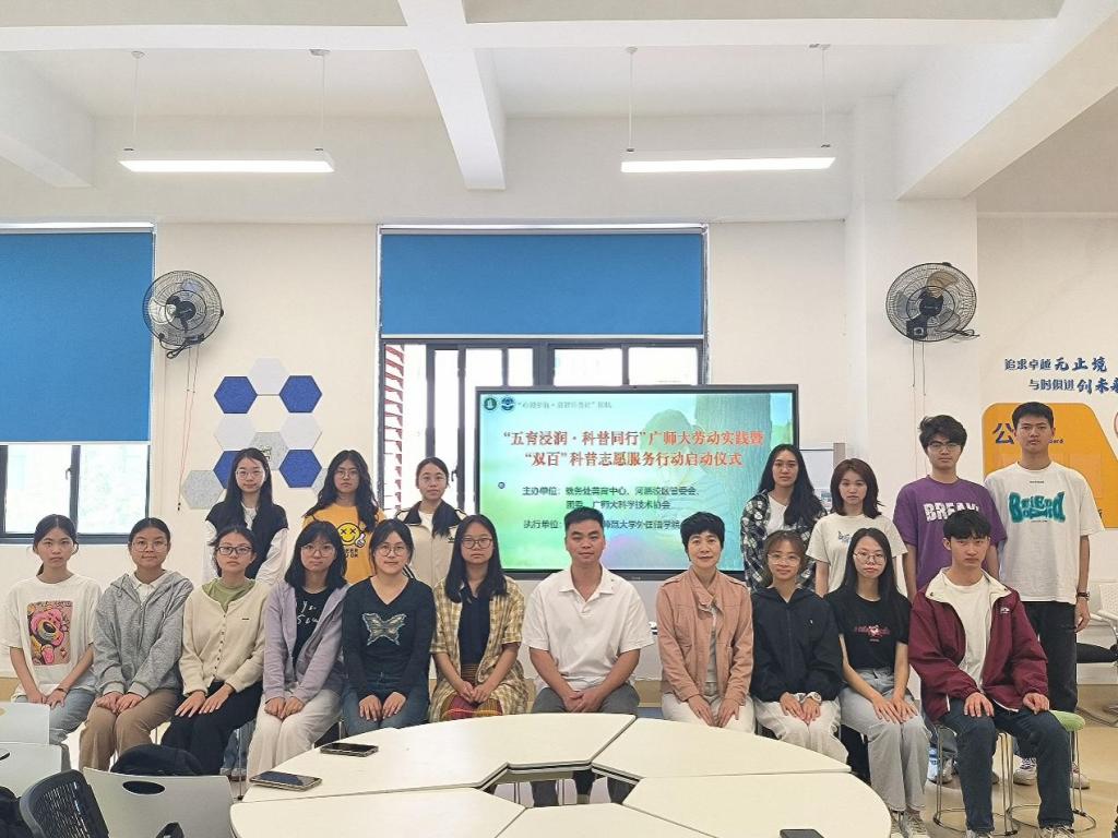为深入贯彻落实党的教育方针,积极响应国家关于加强劳动教育的号召,提升大学生社会责任感与实践能力,同时响应“双百行动”计划,深入实施基础教育帮扶工作,4月10日,由广师大教务处美育中心、河源校区管委会、团委、校科学技术协会联合主办的“五育浸润・科普同行”劳动实践暨 “双百” 科普志愿服务行动正式启动,我院作为执行单位开展了具体工作。