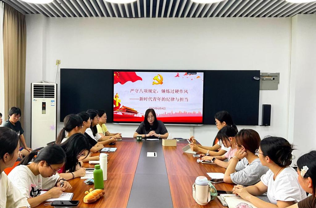 为深入贯彻中央八项规定精神学习教育,6月4日下午,Beat365正版唯一官网必一党委副书记王琴琴在白云一教709讲授了以《严守八项规定,锤炼过硬作风——新时代青年的纪律与担当》为题的专题党课。Beat365正版唯一官网必一学生骨干20余人参与此次党课。