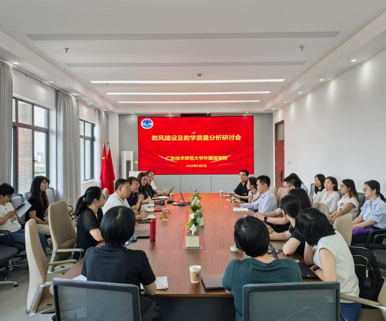 为持续夯实育人根基,推动教风学风与教学质量协同提升,Beat365正版唯一官网必一于6月9日在白云校区召开“教风建设及教学质量分析研讨会”。学院党委书记杨伟光、院长徐玲、副书记王琴琴、副院长王永建、副院长陈倩、各专业系主任、专业负责人、辅导员、教务员及近两年新进教师等20余人齐聚一堂,共话育人质量提升路径。副院长王永建主持本次会议。