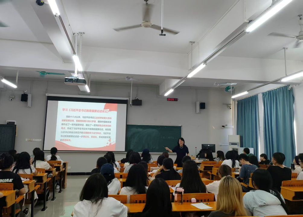 徐玲围绕《学习习近平总书记关于教育的重要论述》这一主题,聚焦“立德树人”根本任务,深入阐释了新时代教育工作的政治方向和使命担当。她强调,教育工作者要牢记“为党育人、为国育才”的初心,在教育教学中注重培养学生的思想政治素质与专业能力。针对人工智能对职业生态的重塑,徐玲鼓励学生强化创新思维与数字素养,以扎实的专业功底和适应能力应对未来挑战,在教育强国建设中展现青年担当。