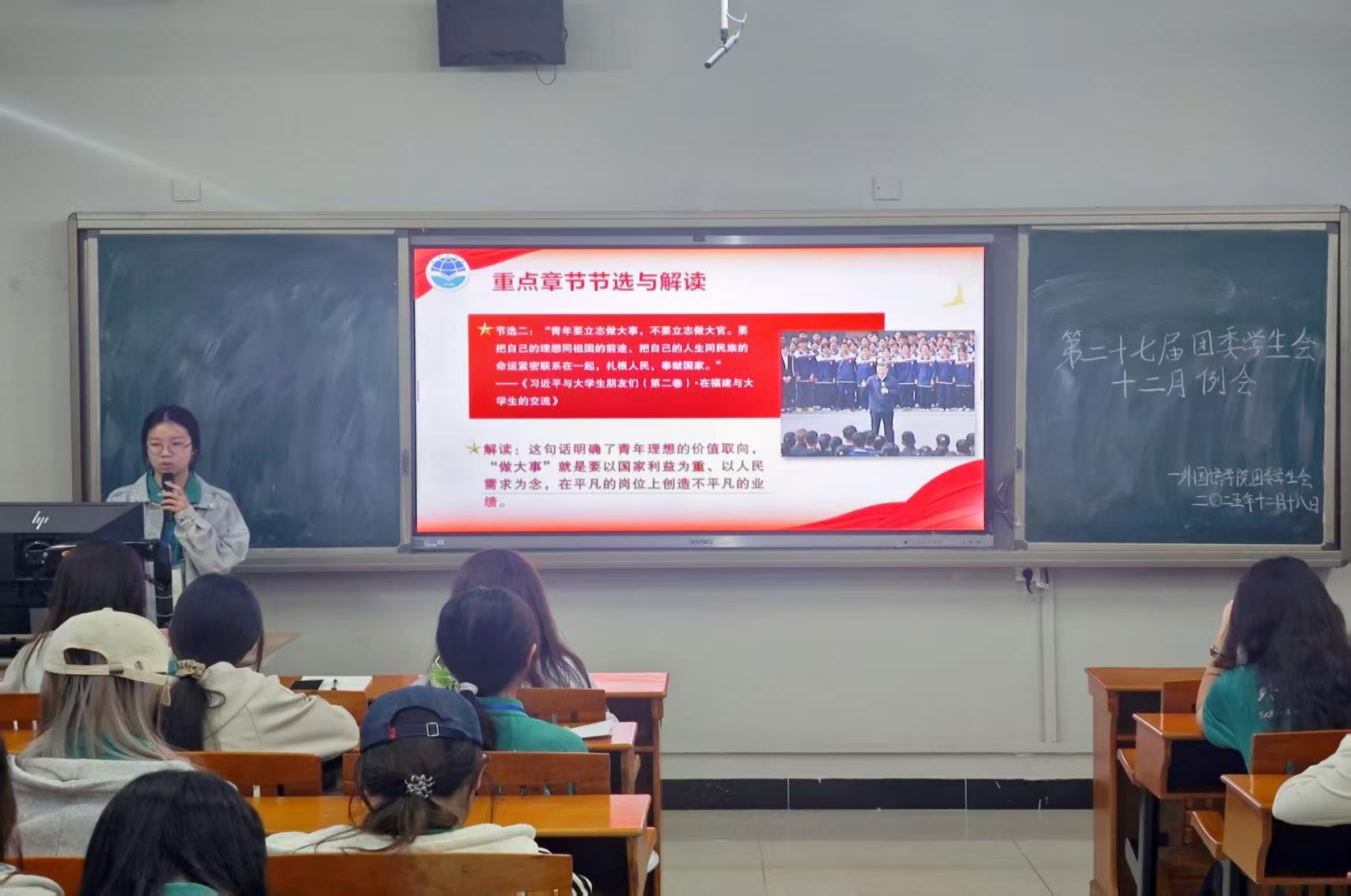 为深入学习贯彻党的二十届四中全会精神,引导团员青年明确时代发展方向,12月18日Beat365正版唯一官网必一团委组织开展了“党的二十届四中全会专题学习会”,引导学生在理论学习中坚定理想信念,推动学习成果转化为青年成长成才的内生动力。