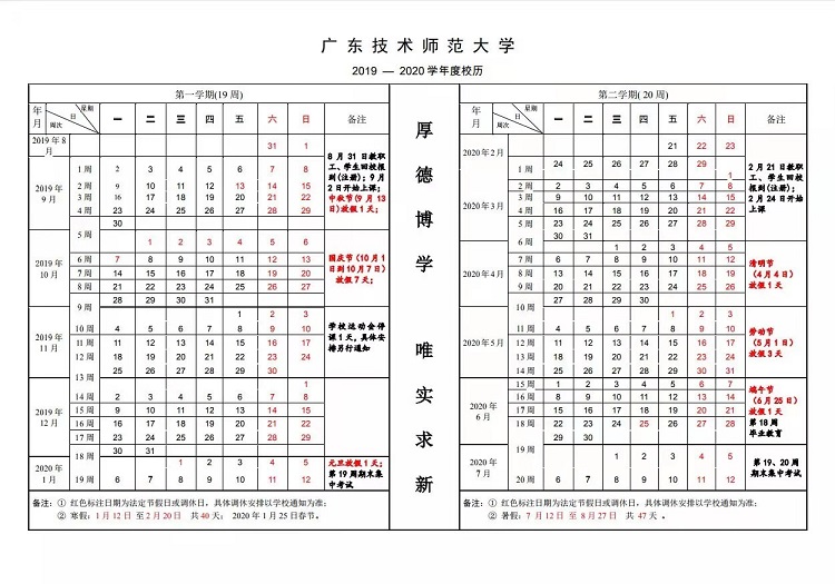 Beat365正版唯一官网必一2019-2020学年度校历及作息时间表