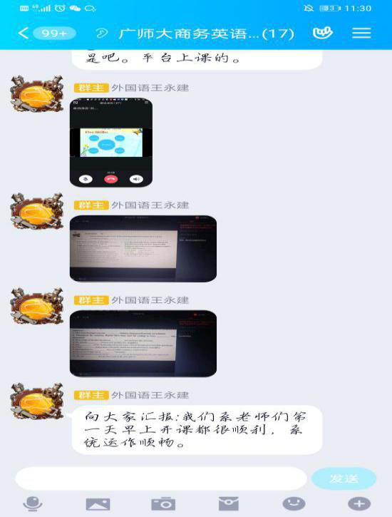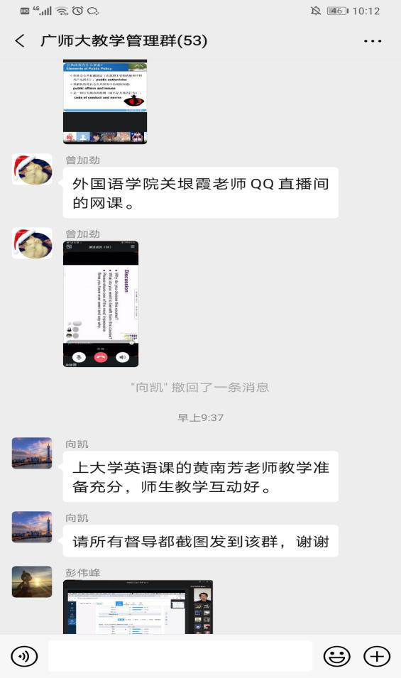 线上教学中,老师们不失教师讲台风采,精神饱满做好每一次网络课程。老师课下主动在教师备课群分享线上操作的经验,互相解答功能上的疑问,对于网络平台出现的卡顿、声音播放等问题,老师们准备了更多应对方案,功能上的灵活运用使老师们的线上课堂更加游刃有余。相信充分的准备加上线上经验的积累会令接下来的线上课程更加顺利、多彩。