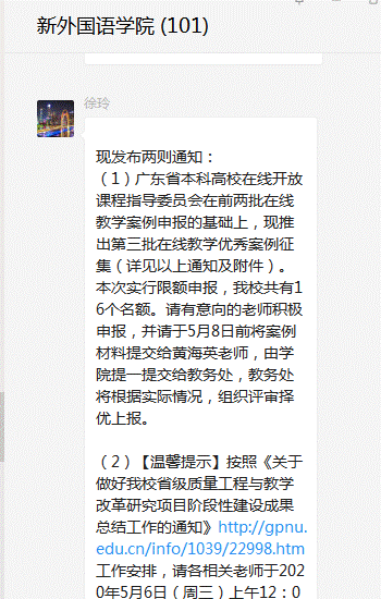 图2:学院发通知鼓励学院的教学团队和教师积极申报在线优秀案例