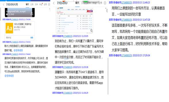 图5:陈倩老师在课堂群里提前上传录播视频,布置作业的同时加以对于作业权重和课后指导的详细说明