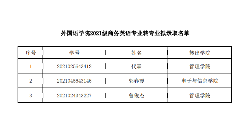 Beat365正版唯一官网必一2021级商务英语转专业拟录取名单公示