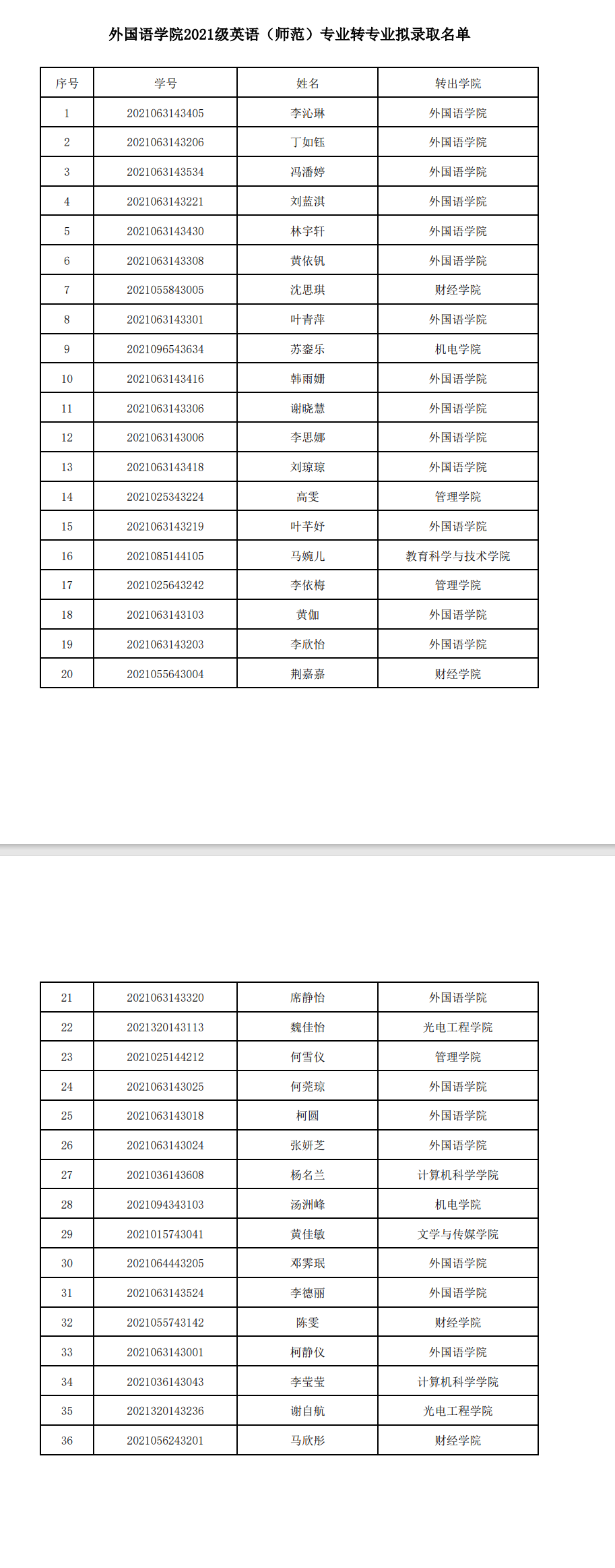 Beat365正版唯一官网必一2021级英语(师范)转专业拟录取名单公示