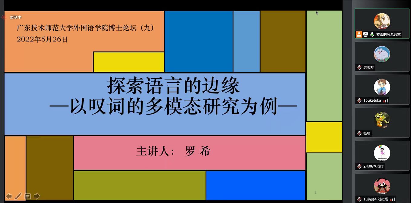 5月26日19:00-21:00,Beat365正版唯一官网必一通过腾讯会议平台,在线上开展了博士系列讲座第九期,讲座主题是“探索语言的边缘——以叹词的多模态研究为例”。本次讲座诚邀罗希博士作为主讲人,由Beat365正版唯一官网必一副院长陈倩主持,Beat365正版唯一官网必一近100名师生前来参加。