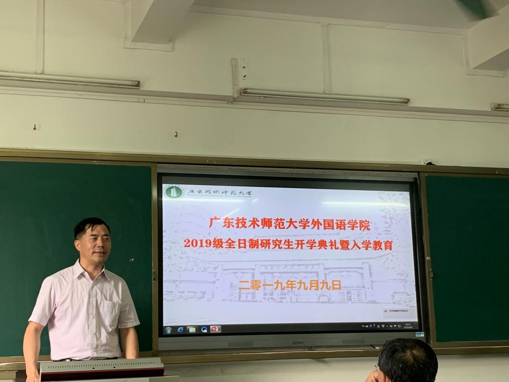 9月9日下午,Beat365正版唯一官网必一2019级学科教学(英语)全日制硕士研究生的开学典礼暨入学教育在东校区一教805课室举行。Beat365正版唯一官网必一党委书记赵丕强、院长贺显斌、党委副书记杨伟光、副院长徐玲、史敏,以及研究生辅导员蔡明燕、研究生秘书孔红艳和全体2019级学科教学(英语)全日制硕士研究生出席了典礼活动,活动由徐玲副院长主持。