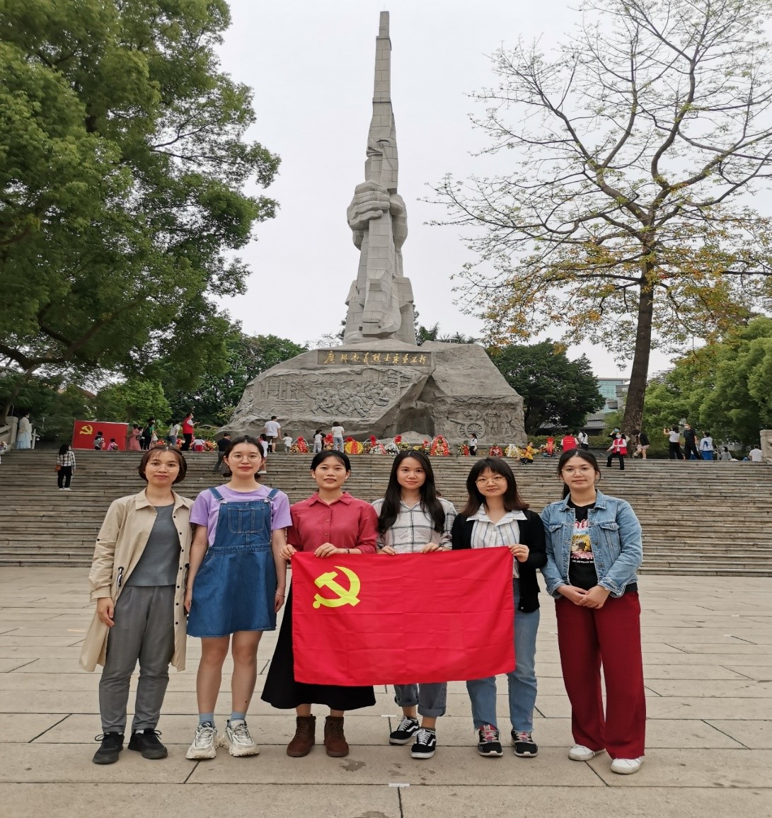 清明节是祭祀先人、缅怀烈士的传统节日。为了铭记历史,传承英雄精神,激发研究生爱国热情,Beat365正版唯一官网必一19学科教学(英语)研究生在4月4日清明节到来之际到广州起义烈士陵园进行“祭英烈、温誓词、学党史、筑信仰”的主题活动。本次清明祭祀先烈活动采用网上祭祀和陵园祭祀两种形式,无法到烈士陵园现场祭祀的同学自主到广州英烈网祭祀先烈。党员程海英、周支燕和入党积极分子庄奔月、陈静、陈丹丽、梁怡冰六人到达广州起义烈士陵园祭祀革命先烈。