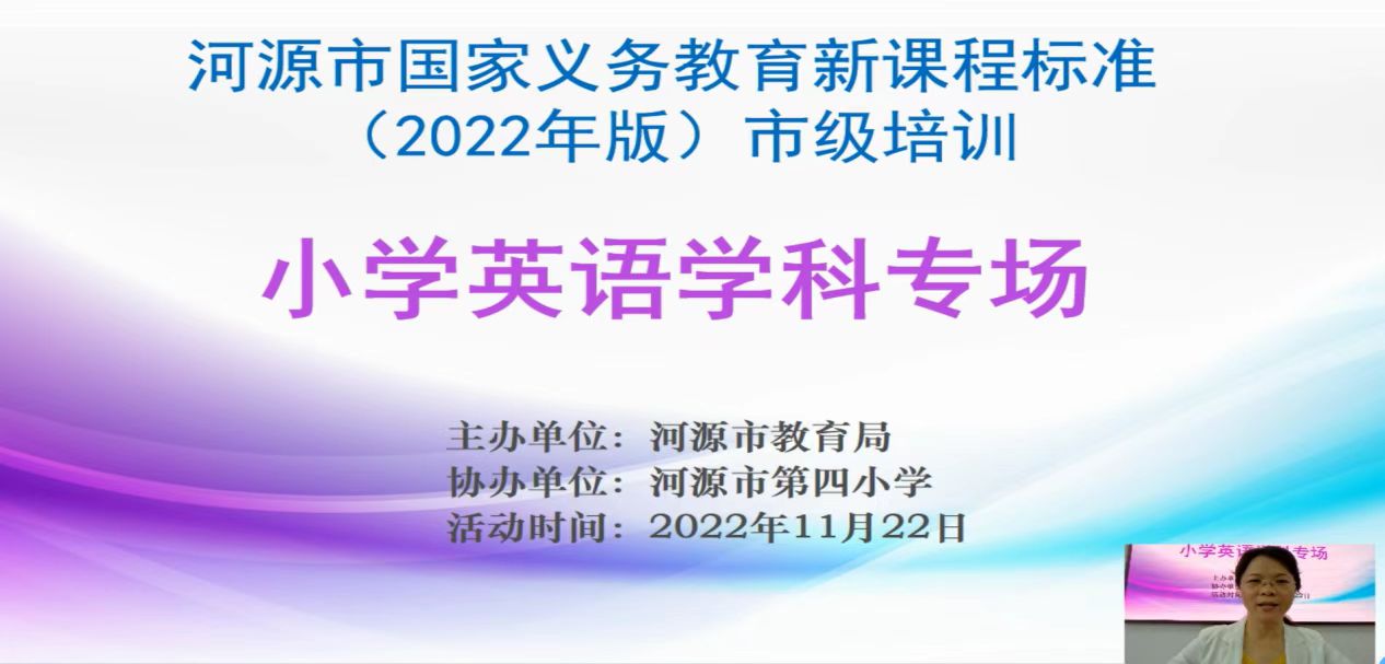 11月22日,为了进一步提升学科教学(英语)专业硕士研究生理解和掌握2022年版国家义务教育英语课程标准理念的能力与水平,我院组织全日制学科教学(英语)专业的硕士研究生在线观看河源市国家义务教育新课程标准(2022年版)培训讲座—小学英语学科专场。
