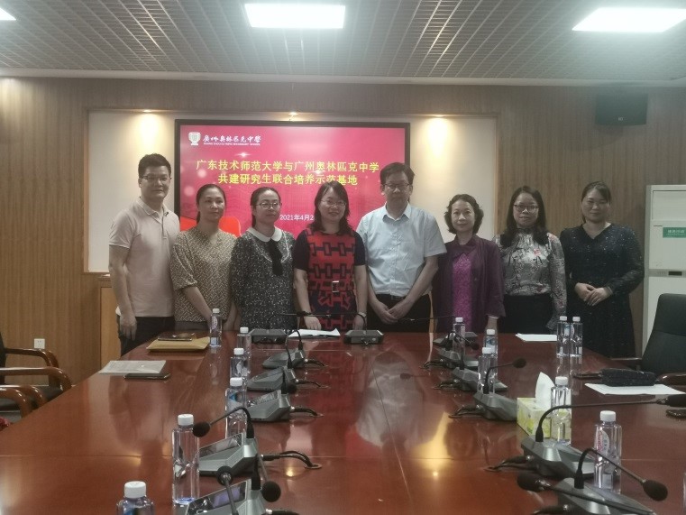 为进一步深化合作、强化基地功能、创新实习工作、推进基地建设,2021年4月26日下午,Beat365正版唯一官网必一徐玲院长、陈倩副院长和陈冬桂系主任一行前往广州奥林匹克中学,开展实习基地建设工作交流活动。广州奥林匹克中学廖晓红书记、周舟副校长、英语科组长、教师代表参加了交流活动。徐玲院长首先感谢广州奥林匹克中学对我院外语专业人才培养的支持和付出,同时,就招生宣传、学科共建、开展研究生联合培养基地建设进行了深入交流。广奥中学领导也高度赞扬我院实习生的优秀表现,表达对共建研究生联合培养实习基地的美好期望。