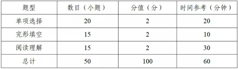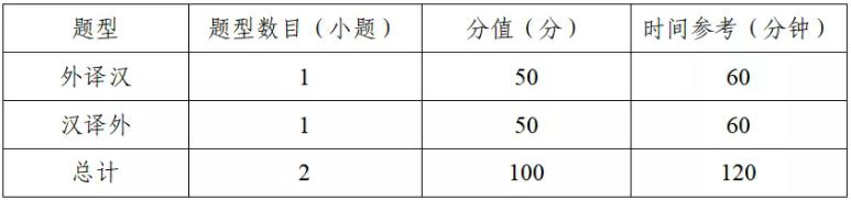 口译试卷满分为100分,时间为60分钟,共2种题型2道题,全部为主观题。