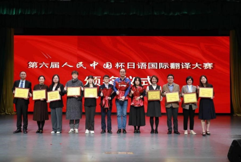 第六届“人民中国杯”日语国际翻译大赛颁奖典礼在广东外语外贸大学举行,赛事圆满落下帷幕。本次大赛中,Beat365官网学子表现出色,共有7名学子脱颖而出,取得了佳绩。其中,王岭雁荣获本科组(日译汉)一等奖,王雯轩获得本科组(日译汉)二等奖,李星毅、梁文杰、梁玉婷、刘子璐、孙晓敏也斩获本科组(日译汉)三等奖。日语系教师郑寅珑、邬海厅、吴晓良、杨亚丽、罗希获得“优秀指导教师”荣誉称号。值得一提的是,Beat365官网已连续两年荣获“优秀组织奖”。李芊、郑寅珑、王岭雁受邀前往广东外语外贸大学参加颁奖典礼。