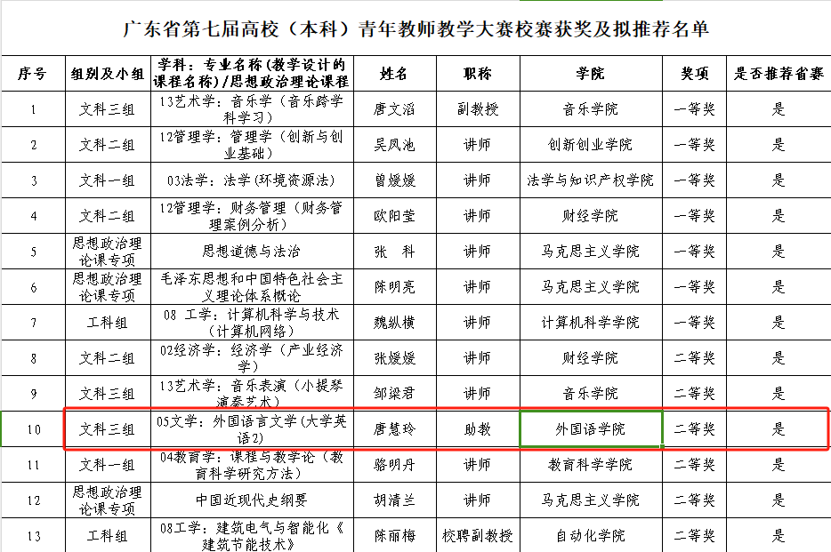 我院老师获广东省第七届高校(本科)青年教师教学大赛获奖及拟推荐