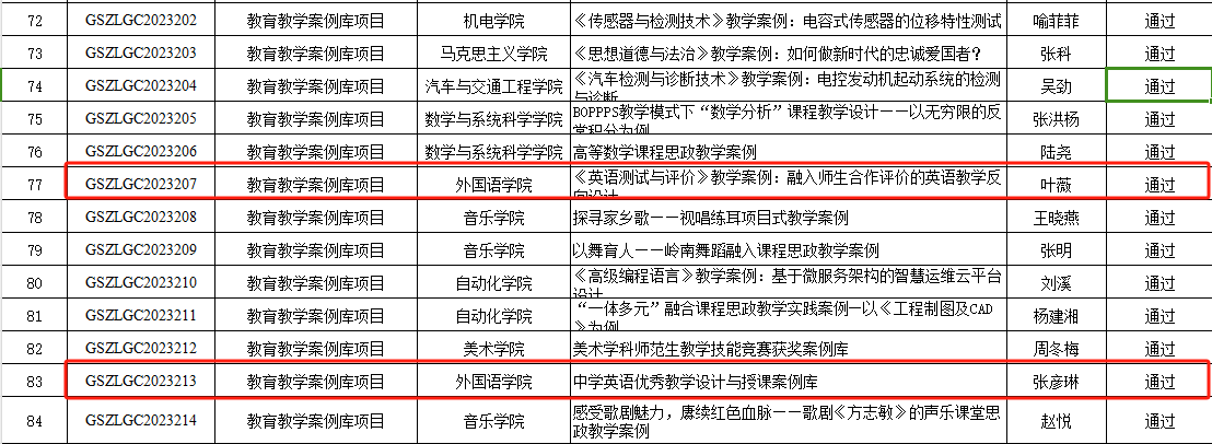 我院叶薇老师提交的《英语测试与评价》教学案例:融入师生合作评价的英语教学反思设计项目、张彦琳老师提交的中学英语优秀教学设计与授课案例库项目获2023年校级教学质量与教学改革工程四库项目结题验收结果通过