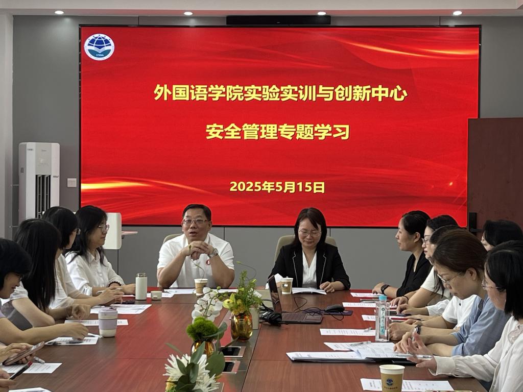 随后,学院院长徐玲简单介绍了近几年来学院建设九个新实验室的具体情况,实验室管理和任课的老师都要有“爱实验室如爱家”的情怀,同时要求实验室任课老师在传统教学的同时结合新实验室的功能积极开展外语专业数字赋能的教学拓展。