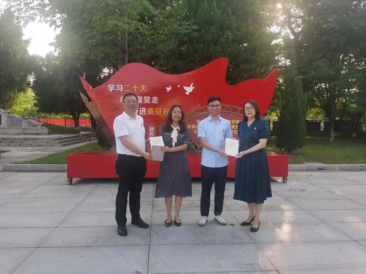 参观结束后,全体党员召开座谈会,交流参观心得,党员同志们纷纷表示,通过党日活动,深刻地感悟了革命先烈甘于奉献、勇于牺牲的英雄气概,坚定了共产党人的理想信念。座谈会上为王娟、杨章健两名在5月和6月入党的同志庆祝政治生日。两名党员回忆讲述了自己的入党经历和成长经历,结合工作实际,分享自己入党以来心路历程和感受。许竹君、杨伟光向过政治生日的两名党员赠送了礼物,勉励他们要对标学习贯彻习近平新时代中国特色社会主义思想主题教育“学思想、强党性、重实践、建新功”总要求,坚持学思用贯通、知信行统一,以学铸魂、以学增智、以学正风、以学促干,立足岗位,砥砺奋进,推动学校各项工作高质量发展。